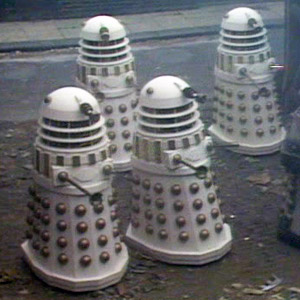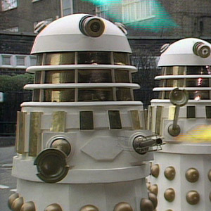 These are the new and improved Imperial Daleks led by Davros. These were the first Daleks able to fly/hover properly.