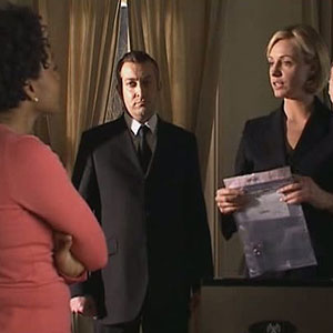 A man working for Mr Saxon warns Francine of the Doctor